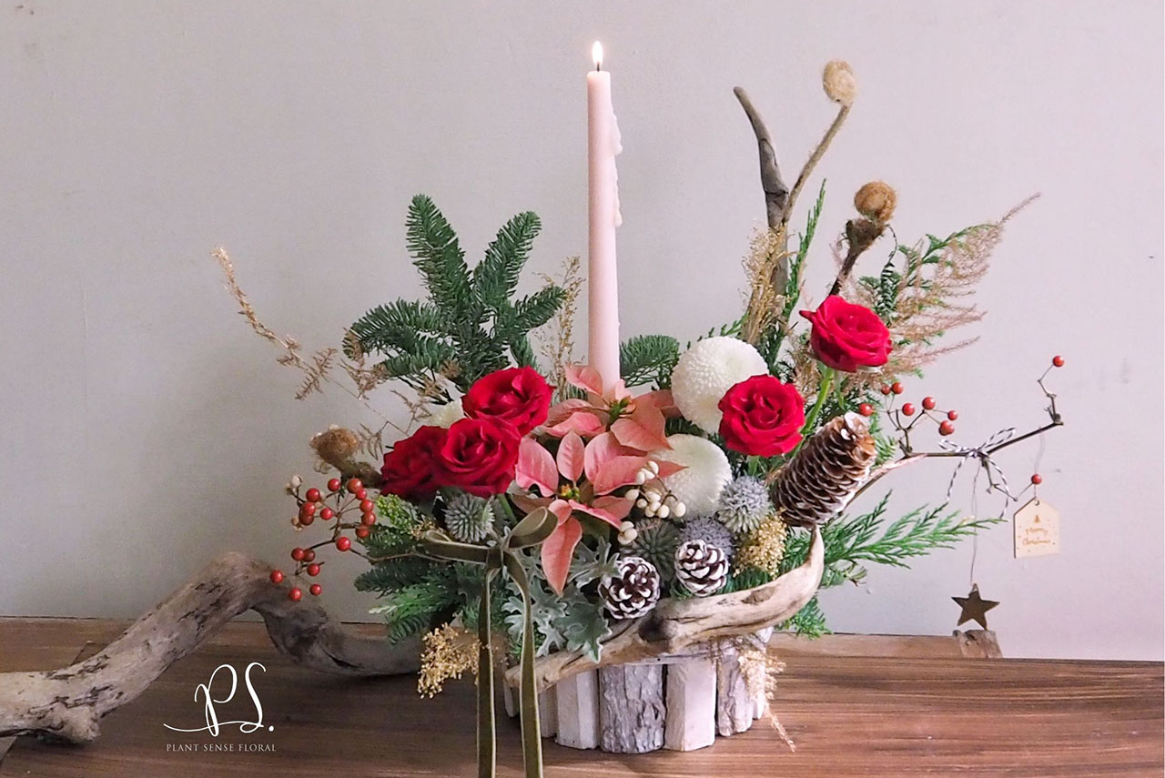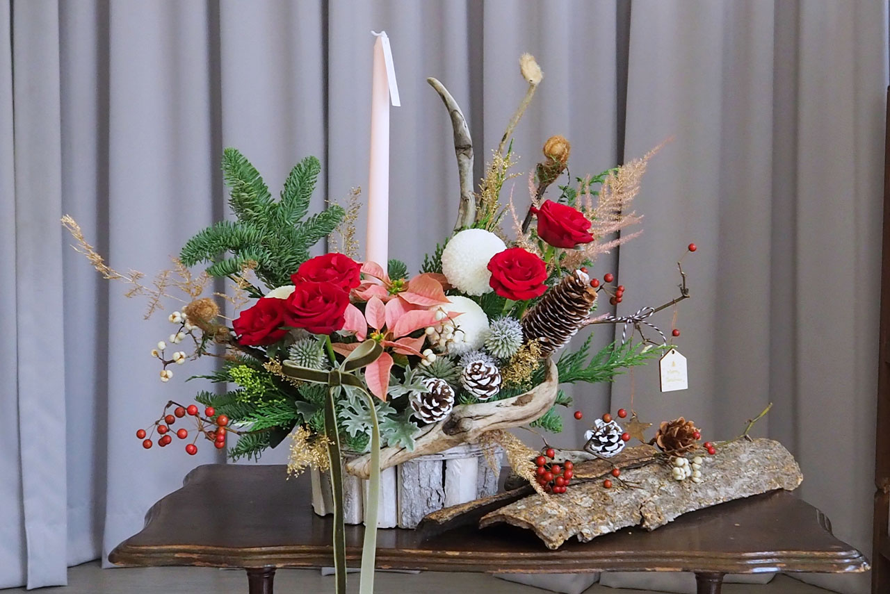 由講師帶領插作「聖誕花藝小品」